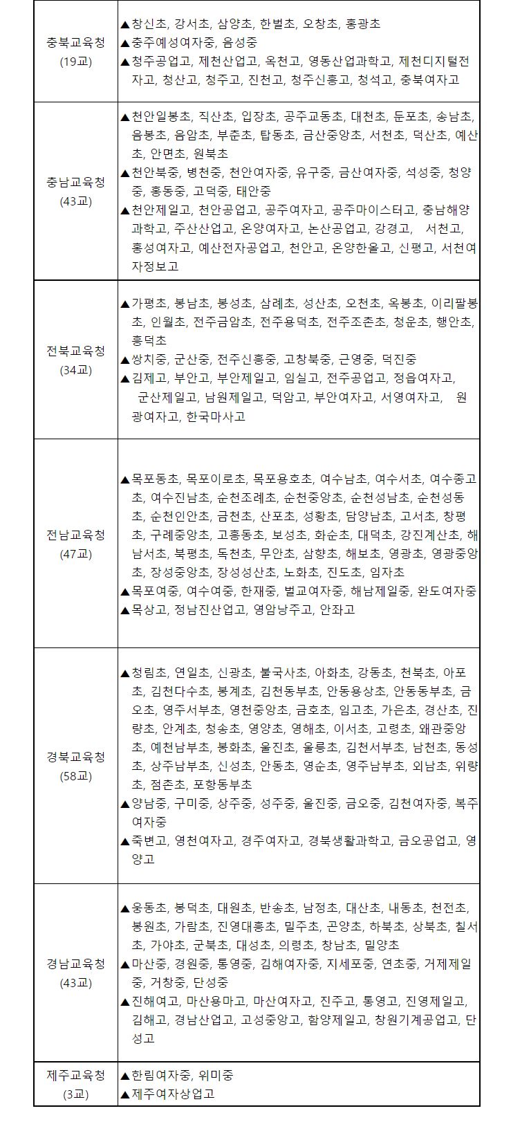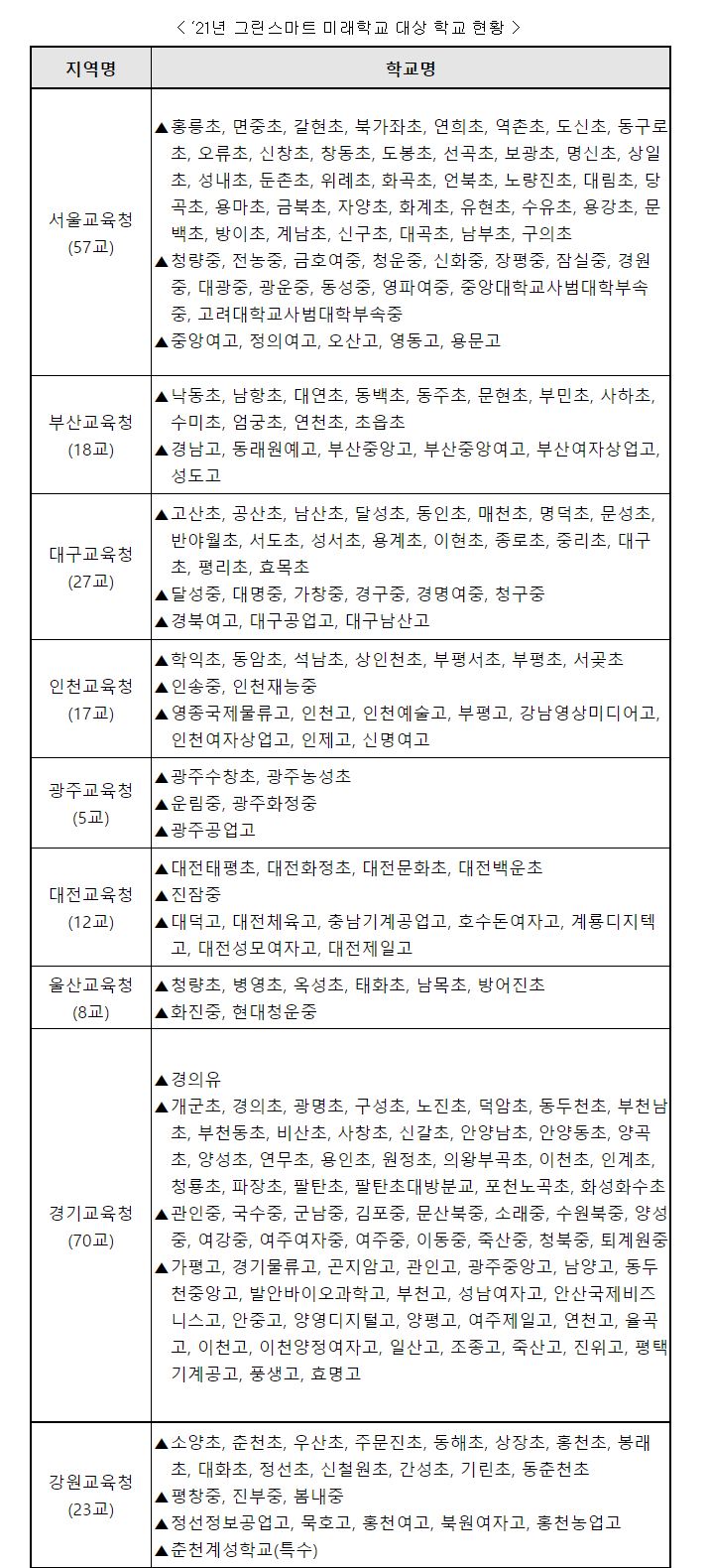 미래학교 선정 목록