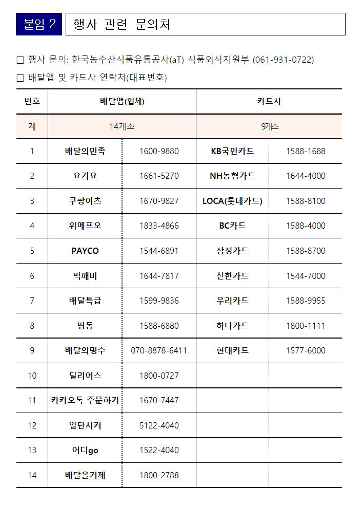 농식품부에서는 “향후 코로나19 방역 상황이 나아지면 잔여 예산(400억 원)을 활용하여 방문 외식까지 확대하고 지역화폐도 일부 추가하여 행사를 재개할 것”이라고 합니다.