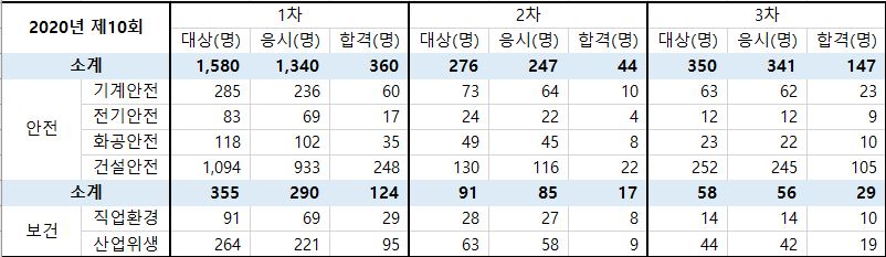 제3차시험 | 면접시험: 전문지식과 응용능력, 산업안전 · 보건제도에 대한 이해 및 인식 정도, 지도 · 상담 능력 등 | 1인당 20분 내외 |