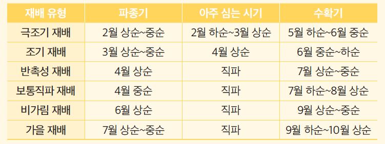 ○ 노지 재배(보통 재배) : 평야지 4월 상·중순, 산간지 5월 상순