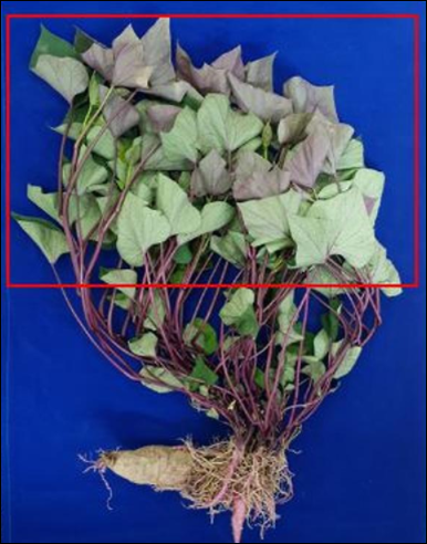 고구마 끝순 이미지고구마 잎자루는 잎과 줄기 사이의 연결 부위이고, 끝순은 새로 나온 잎과 줄기를 포함한 끝부분을 말한다. 이번 연구 결과 고구마 끝순에 건강기능성 물질이 풍부하고, 생리활성 효과가 우수한 것으로 나타났다.