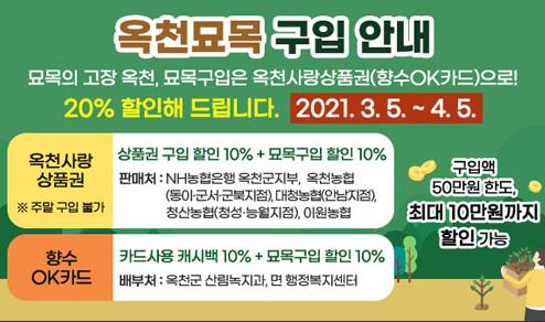 올해 제21회 옥천묘목축제는 코로나19로 취소되었습니다. 비대면으로 진행한다고 합니다.