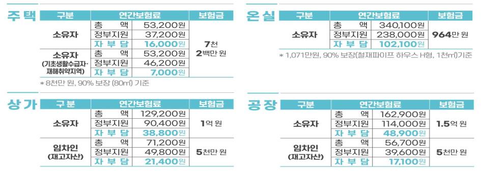 * 보험가입 금액·면적·지역 및 지자체 추가지원에 따라 보험료는 다를 수 있음.