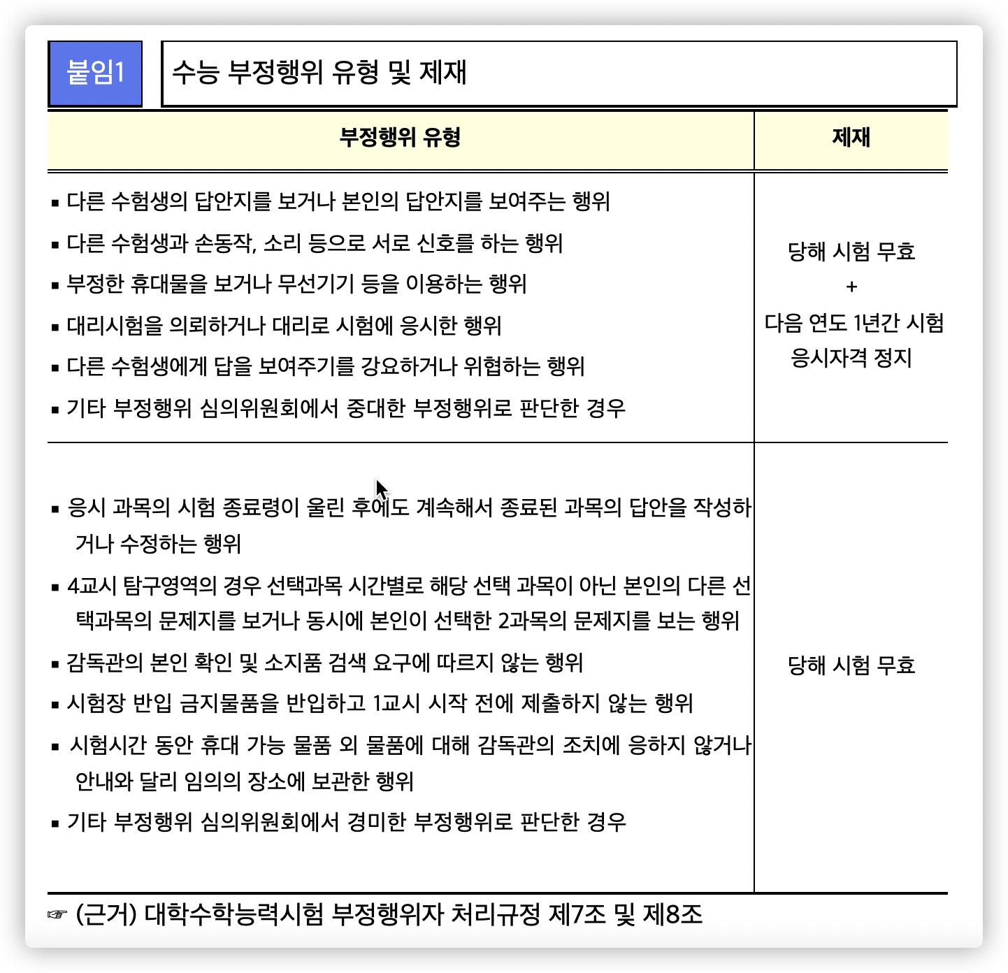 수능 부정행위 유형 및 제재