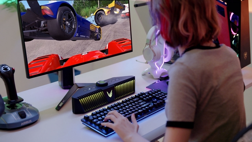 역동적이면서 깔끔한 올인원(All-in-One) 디자인도 장점이다. 가로 길이가 40cm를 넘지 않아 모니터 스탠드를 벗어나지 않는 크기는 책상 위 공간 활용도가 뛰어나다. 사용자 취향에 맞춰 스피커에서 나오는 조명을 설정할 수 있는 멀티 라이팅 기능은 더 몰입감 있는 게이밍 환경을 만들어준다.