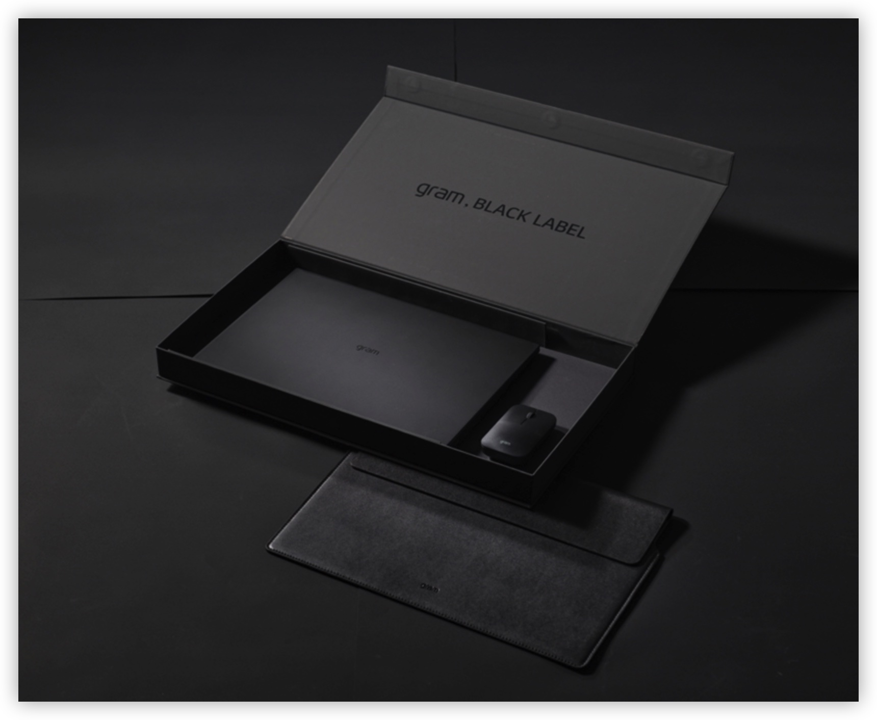 LG전자는 이 제품을 사용하는 고객이 최고를 가졌다는 자부심을 느낄 수 있도록 지금까지 출시된 LG 그램 라인업 중 최고 사양을 적용했다. 여기에 외관과 전면의 그램 로고는 물론, 액세서리인 파우치와 마우스까지 전부 블랙 색상으로 디자인해 고급스러움을 극대화했다.