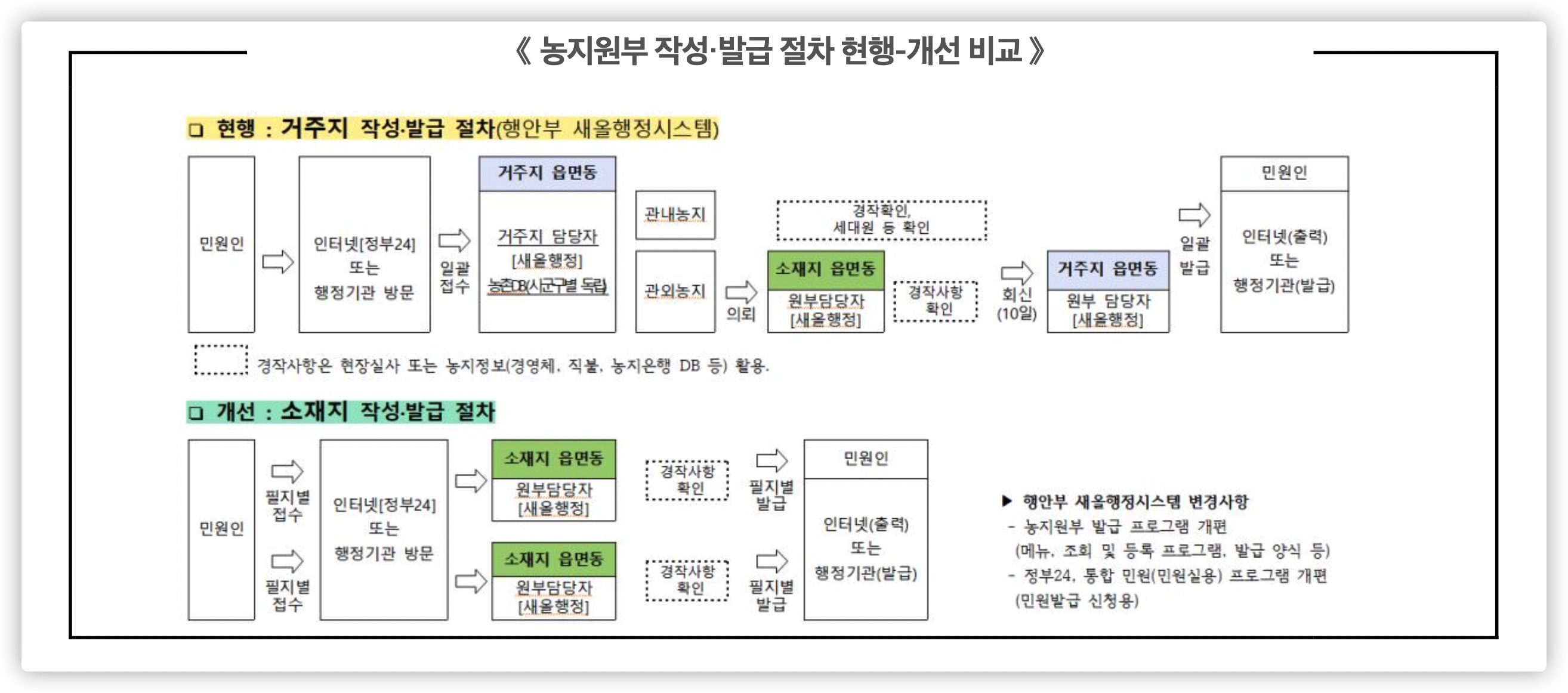 아울러, 농지원부의 명칭 변경(농지원부 → 농지대장), 농지 임대차 등 이용현황 신고 의무화를 위한 하위법령도 마련 중이다.